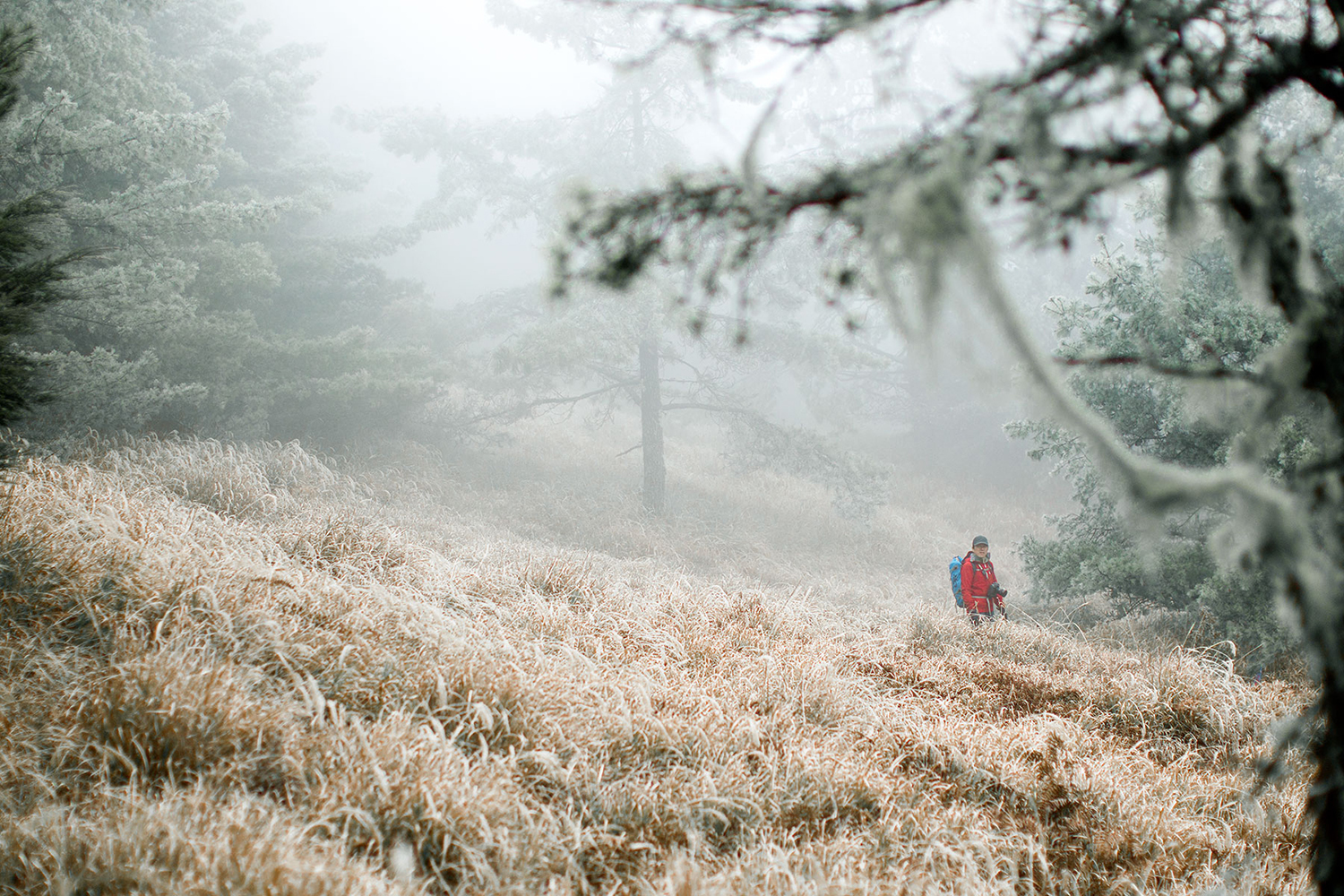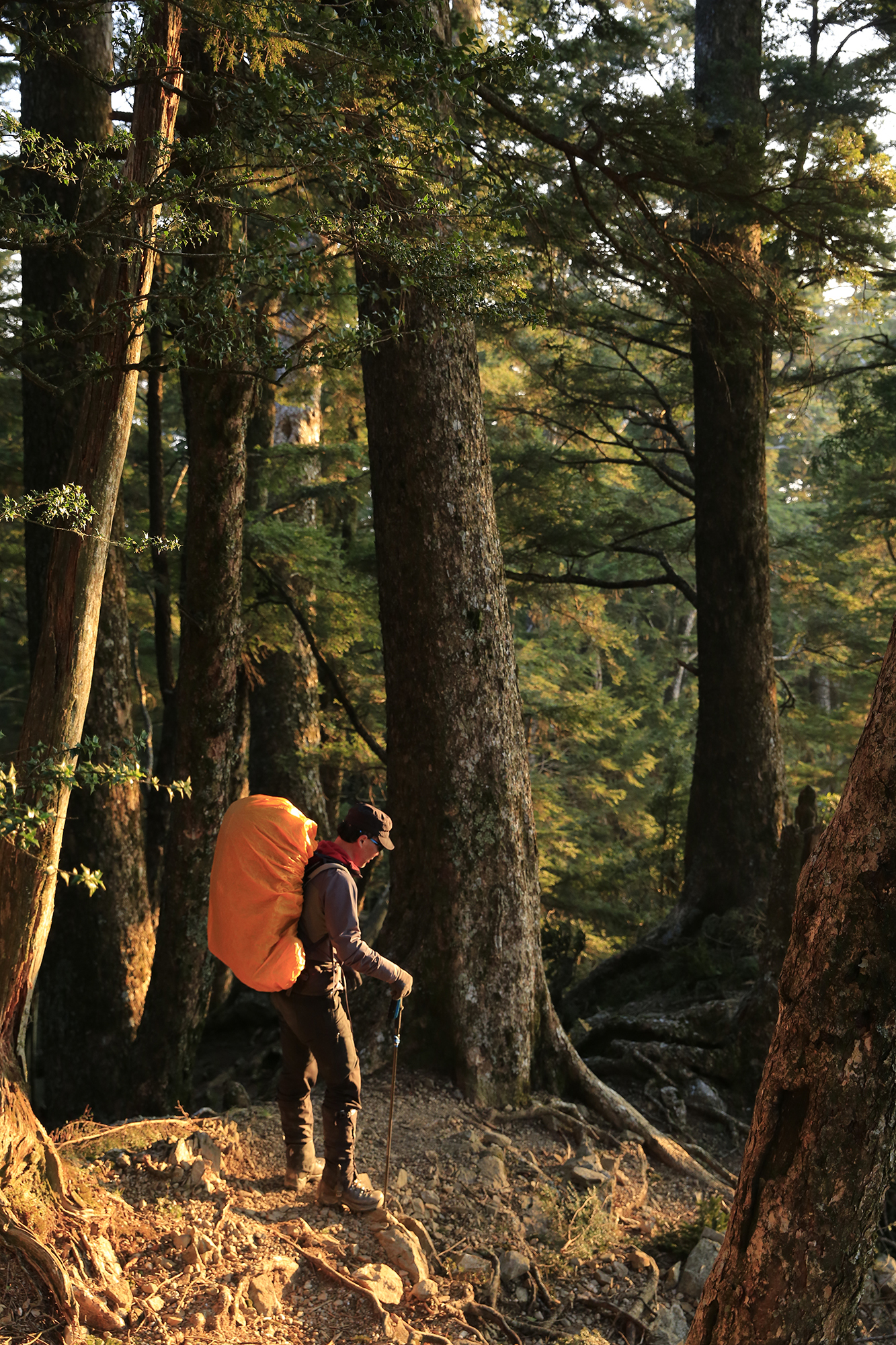 但是就算是穿著當今最透氣的防雨外層,重裝走久了也一樣會悶熱,容易流汗的人必定也是汗流浹背,而流汗濡濕內層衣物之後也很難再乾燥。所以除非天候惡劣,風勢強又濕冷,一般情況下是不會在重裝行走時穿著這類衣物的。尤其是雨褲,除非下大雨或是需穿越大面積飽含水分的箭竹叢,不然都是收在背包裡備用。