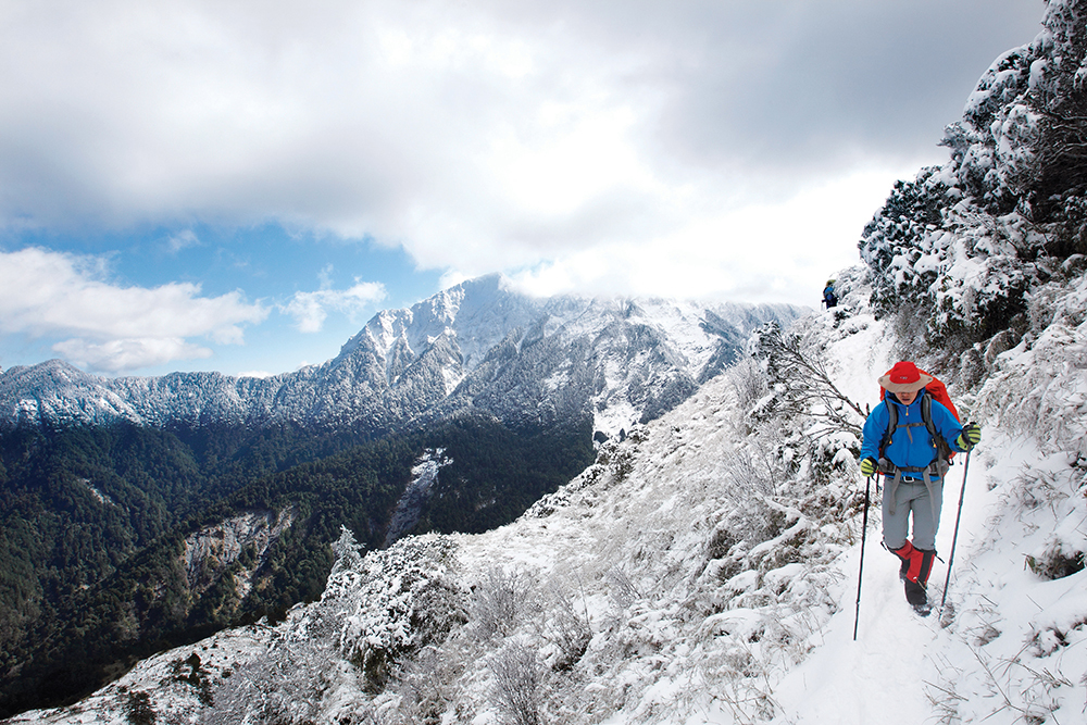因此一趟冬季的高山行程,身上穿一件薄長褲,背包裡會再塞一件貼身四向彈性的內層褲,以及一件短褲,當然還有必備的雨衣褲,所以一共是四件。這些褲子的材質都不必過於保暖,以台灣的天候來說,當同時穿二件長褲時的保暖性應該都夠了。當然如果體質怕冷的人可以選擇更保暖的材質,現在的技術早已做到重量超輕又耐損,可以提供保暖、擋風、快乾、防潑水等必要的機能。只要布料有很好的耐髒汙與防潑水效果,就算沾到泥濘,也很容易擦掉,或是待水份乾燥後,泥土自然不易附著布料表面。只要水滴也不易附著,布料就不易潮濕,而就算濕透,只要布料快乾性能良好,由於下半身的活動量較大,濕的褲子也很容易被體溫烘乾。