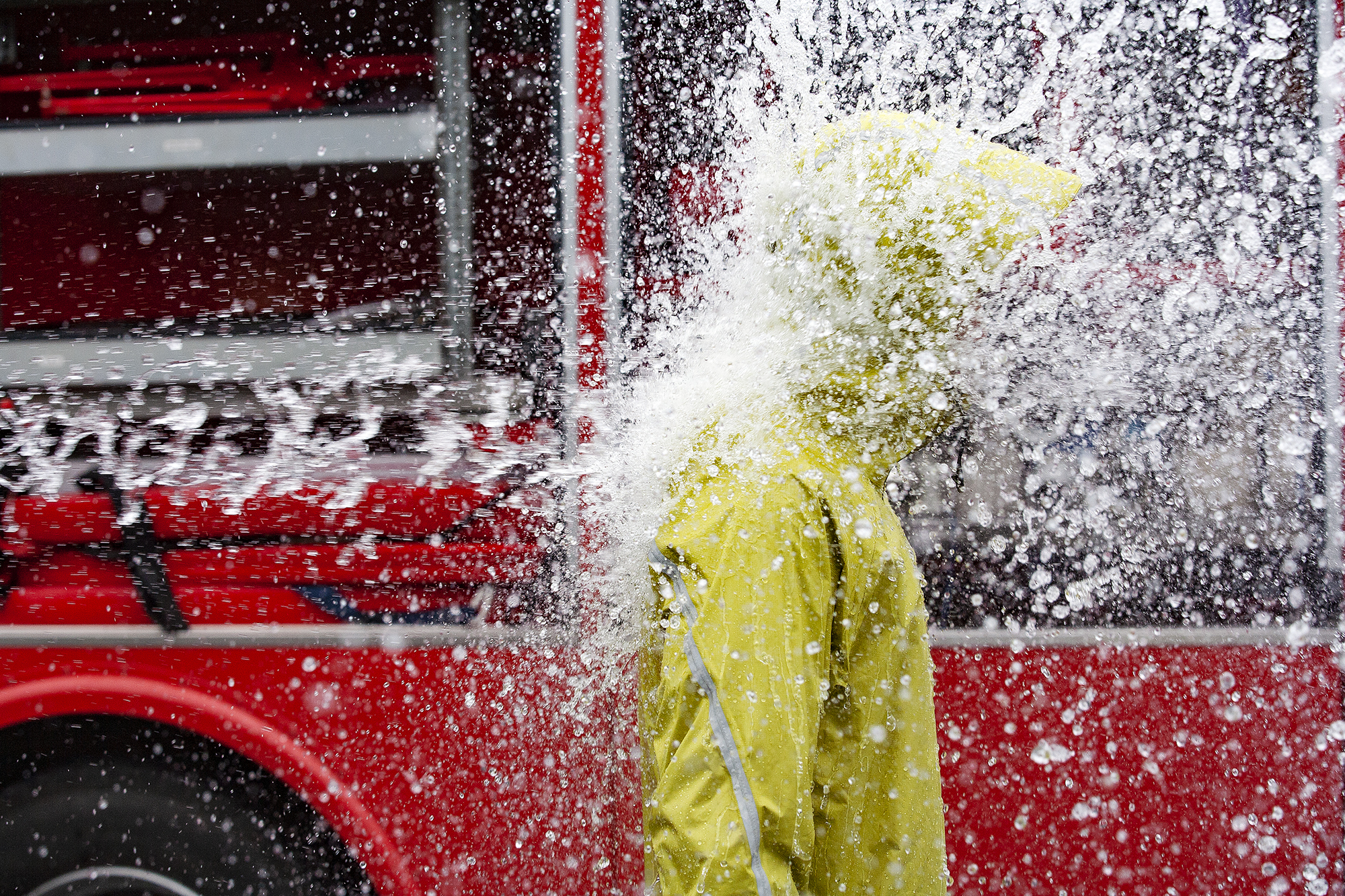 很多人穿新買的雨衣,脫下雨衣後發現布料內面是濕的,總會懷疑是雨衣抵擋不了風雨而滲水,不過除非雨水是從抗水拉鍊(不防水喔!)或拉鍊、領子開口滲入,或是車縫線後方的防水貼條脫落,不然自然界的水壓直接貫穿布面的機率微乎其微,因此大多是汗氣產生>排出速度所致的反潮現象。通常會發生在袖子和腋下部位,因為人體這區塊的產熱量大到雨衣的透氣速率跟不上。不信的話可以穿上只能防潑水的風衣或軟殼外套,開大水近距離沖布面就知道漏水是怎麼回事了。