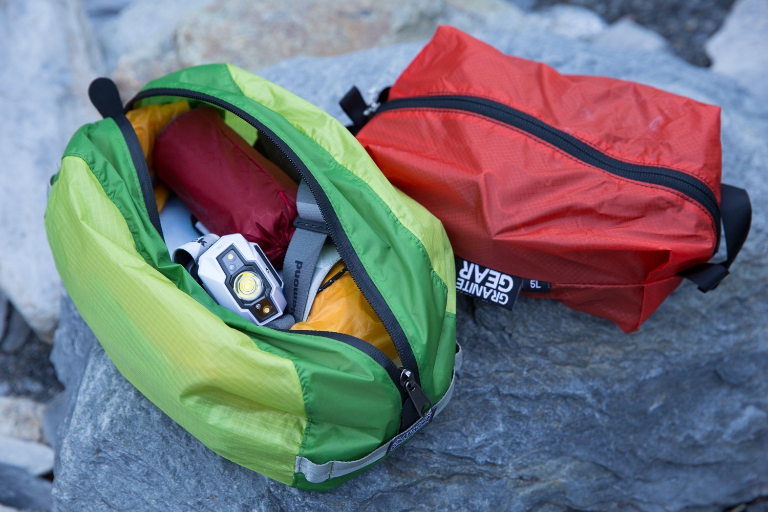 備用衣物必須以輕便的防水內務袋收納好,由於不怕撞擊,放在背包下層較適合。衣物也不需要摺疊得很整齊,尤其是防水透氣的外層雨衣,這種以貼一層薄膜的防水衣物若是長期摺疊,容易在摺痕漏水。至於羽絨衣則是可擠壓收納的產品,收在背包裡都是儘量壓縮到最小體積。最重要的收納原則是,愈常用到或是緊急時需要快速取出的雨衣、風衣、背心等,必須放在背包的最外層或最上層收納,方便遇到一陣驟雨時能夠儘快取出。保暖層衣物則是在營地與山屋才會用到,所以收納在背包的底層。