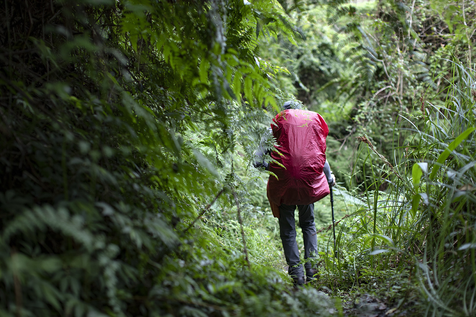 以前路況沒有這麼寬大,應稱為獵徑,但現在被整理的非常好。只是這一帶因為地質因素,山區經常容易坍塌,尤其是一場大雨過後。果然在通過楠溪之後步徑就沒那麼好了,倒木與崩坍地形交互出現,加上地面溼滑,有些路段得抓著草木才好使力,背著沈重的大背包其實也不輕鬆。