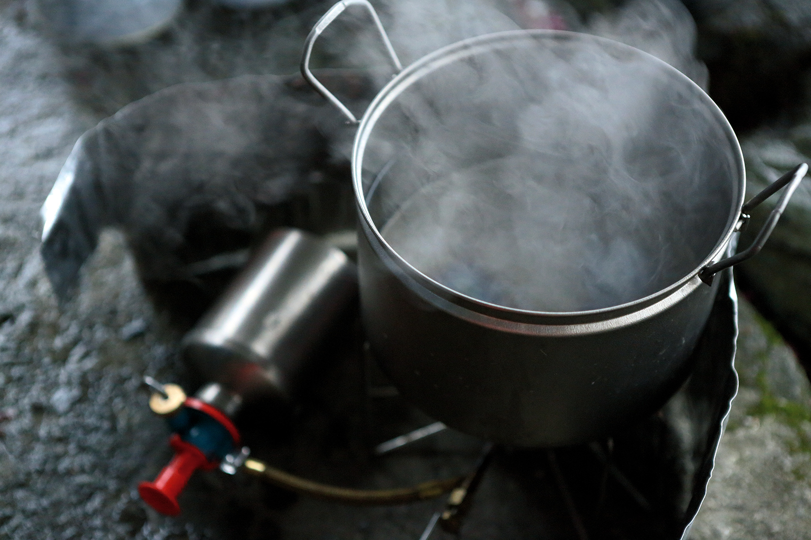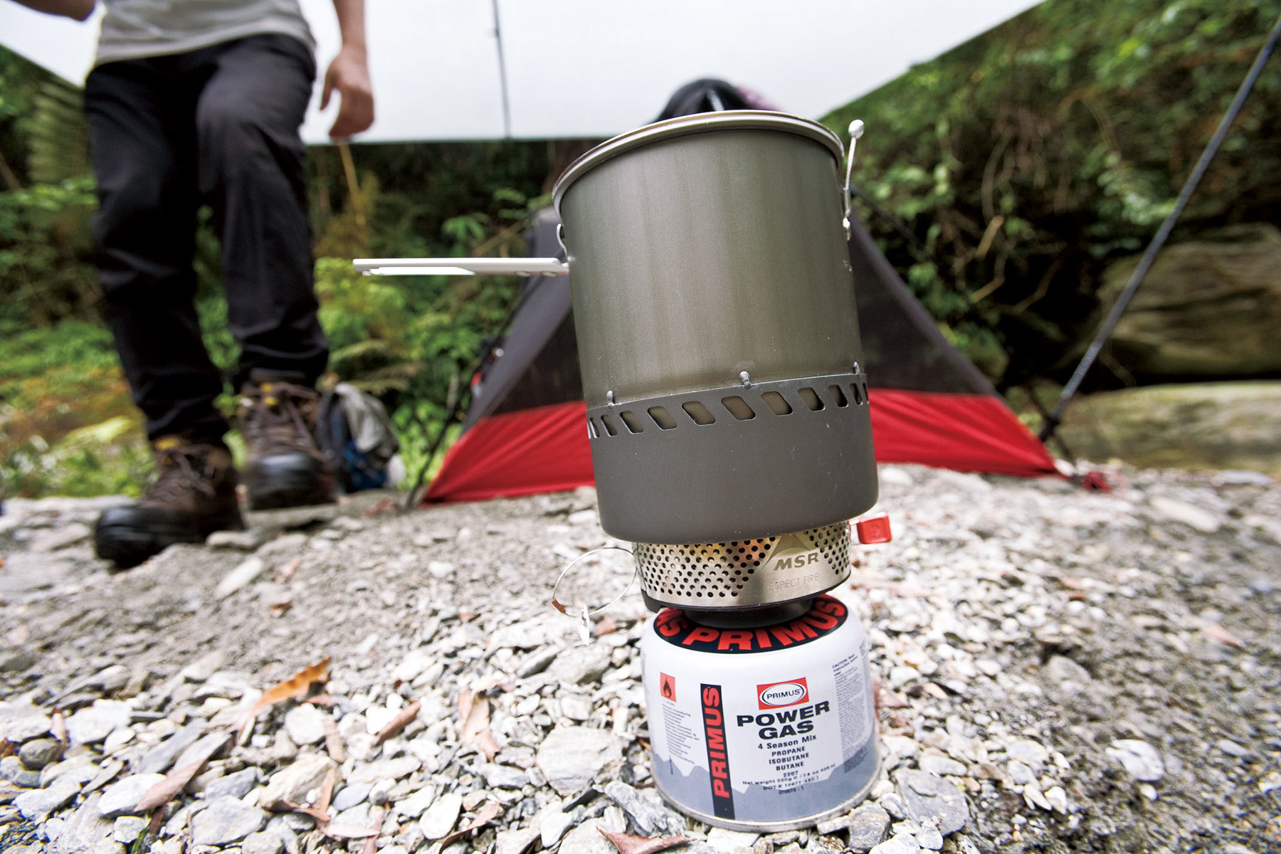 在適當通風的帳蓬中炊煮,除了避免一氧化碳中毒,帳棚也要夠大才行。不過請特別留意帳內人員的移動,拖動地布導致鍋爐翻覆。極低溫用的瓦斯罐,罐面貼有特殊吸溫材料增加吸熱,幫助瓦斯汽化的效率,雖說如此,低溫環境還是得在帳棚內吹煮,既擋風節省燃料,又可取暖。