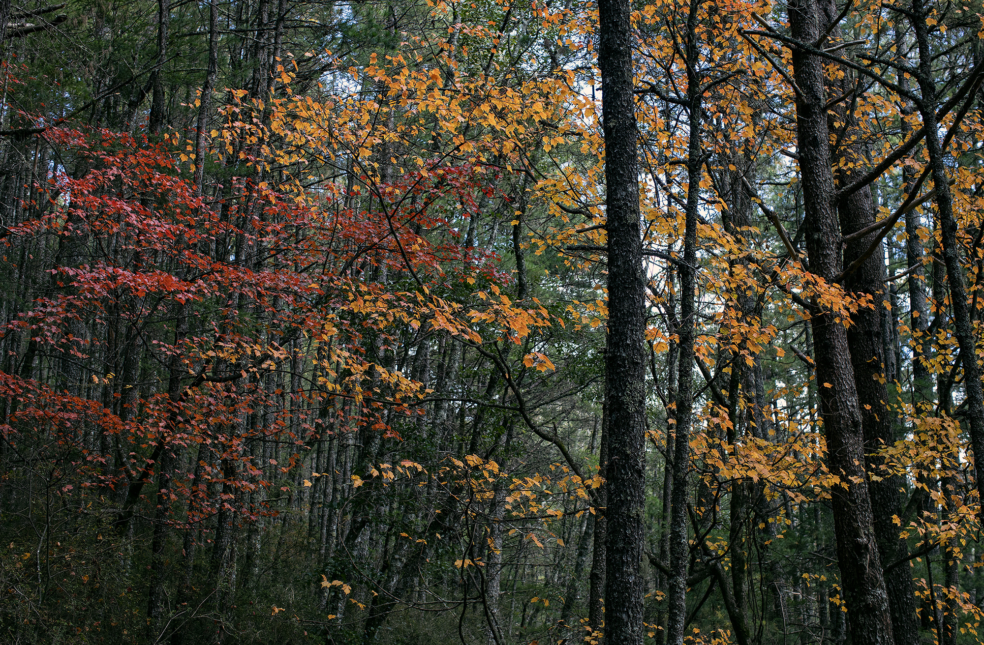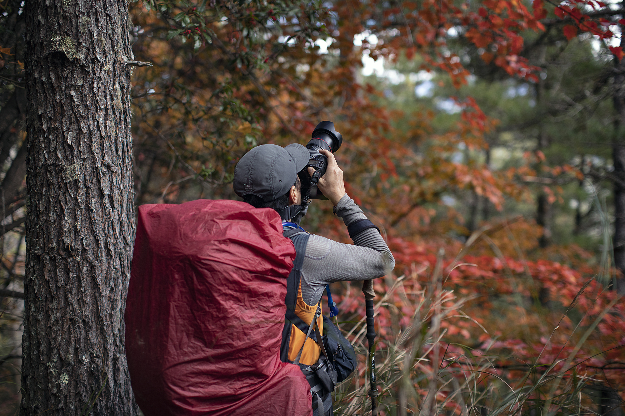台7甲線靠近環山部落有座橫跨南湖溪的清泉橋,730林道就從清泉橋邊開始深入山林,四輪傳動車輛可以行駛到11.7K處,但是林道路幅狹窄,能停車和會車的位置不多,所以我們還是選擇搭乘接駁車輛進入。人員從行車終點開始走,林道上能紮營的位置不少,我們在24K水源附近找了一處營地紮營過夜。第一天行走距離較長,但是除了一段崩坍處較難走之外,其餘路況都很好走,在這個季節730林道沿途有許多紅葉樹種如台灣紅榨槭、青楓等,加上多處奇花異草以及不時突然出現的帝雉、藍腹鷴等少見的野生鳥類,我們耗在拍照的時間頗長,所以在下午三點左右才抵達營地,紮營取水後差不多也天黑了。