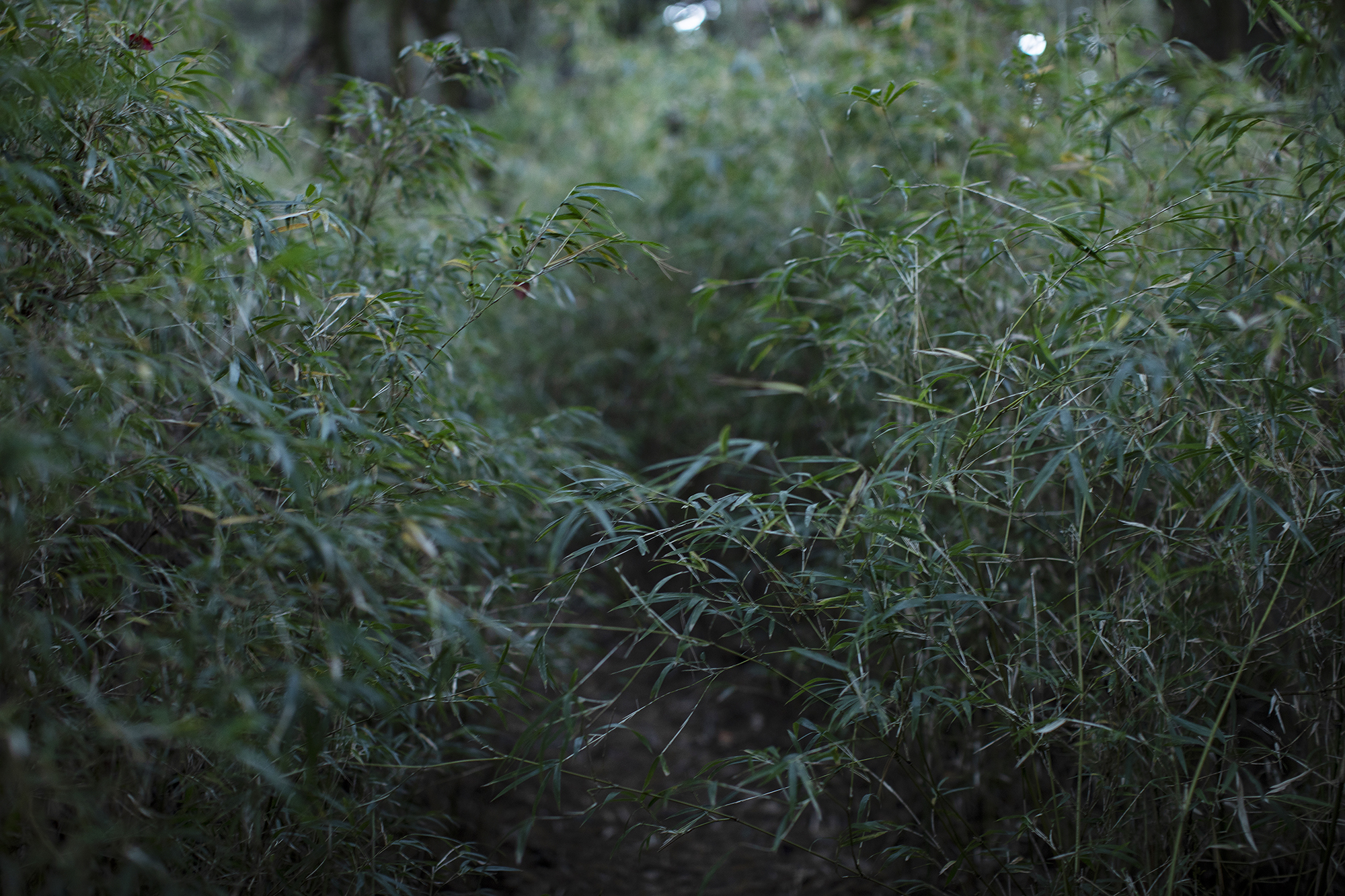 在濃密而且距離不短的箭竹叢下鑽行,除了全身衣物容易濕透以外,視線也會受影響,通過岔路口時有可能會不易辨認而錯過,最好隨時注意手機離線地圖顯示的現在位置和行進方向。除了從登山口上行的陡坡上得鑽爬箭竹之外,在林道上也有不短的距離也是,差別是林道地面的坡度起伏很小,走來並不吃力,只是臉部老是被箭竹的枝葉掃過,有時會讓眼睛暫時睜不開。