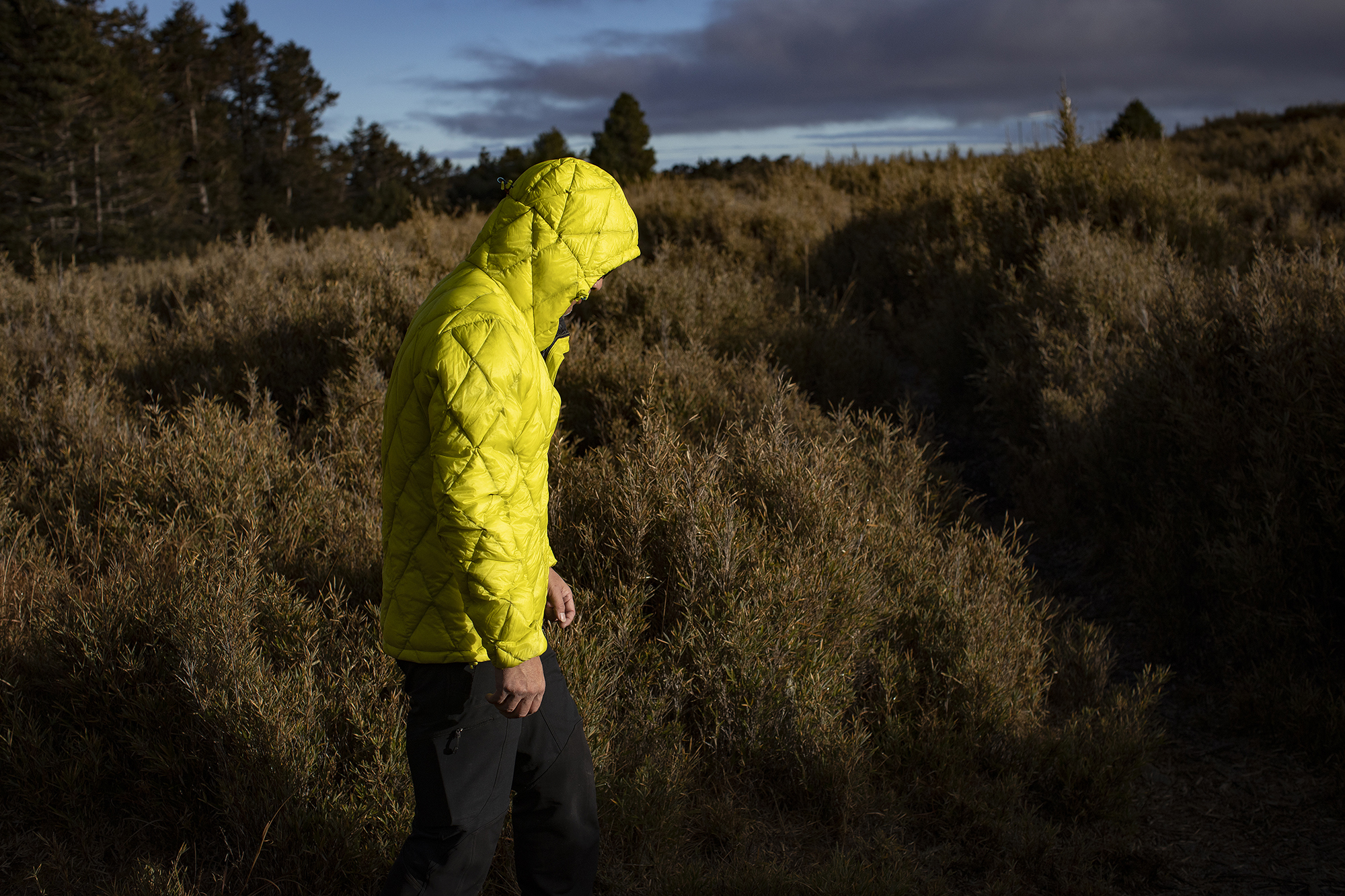 帶著這件羽絨夾克的主因是因為輕量。羽絨製品的保暖性仍優於大部分的化纖填充材料,尤其是採用高蓬鬆度的羽絨。這件羽絨夾克的填絨量為80g,對登山運動來說,已經不算少,可說是三季適用,表布採用超輕量的10D抗撕裂尼龍格紋布,並有矽膠壓光防穿絨處理,同時有經過無氟防潑水處理,有一定的防潑水能力(會隨時使用時間衰退)。重量非常輕,男款M號只有270g重,而且可以隨意壓縮,就算是塞在登頂包內隨身攜帶也不會有累贅感。