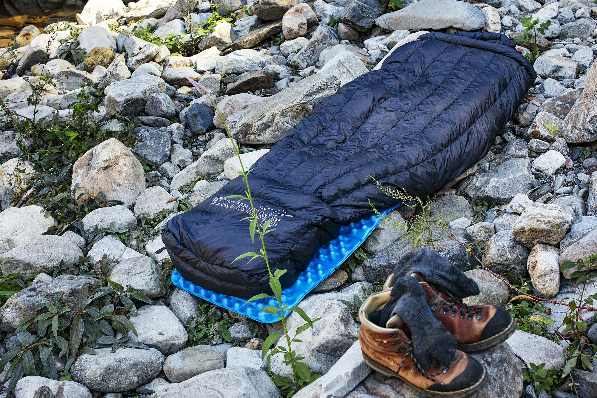 躲進睡袋之後,背部下方的睡袋填充物會被我們自己的身體壓扁,其實是沒有保暖作用的,此時就必須依靠睡墊阻絕來自地面的寒冷。睡墊有充氣式結構和發泡物二種,無論外型為何,目的都是一樣,但是登山用途當然是要講究輕巧,所以會儘量縮小體積,展開後通常是與肩同寬或略寬,長度則和睡袋一樣或略長,這二項裝備都有不同的尺寸規格可選。